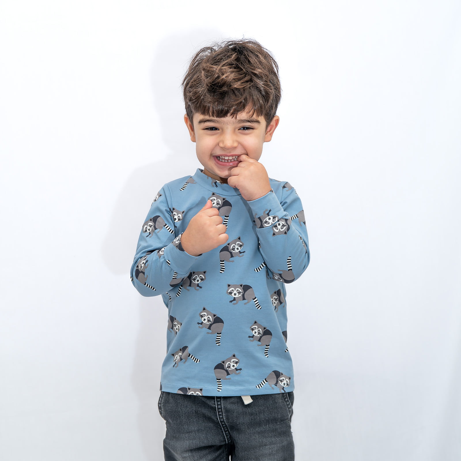חולצה סופר נוחה מכותנה אורגנית בדוגמת רקונים שובבים